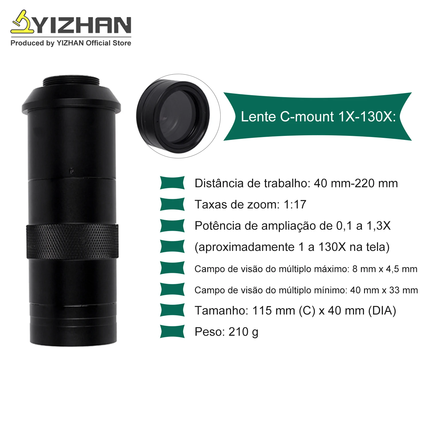 Lente de montagem C com zoom 1X-130X: